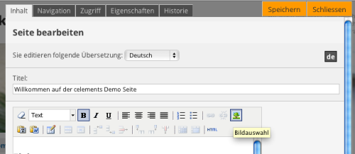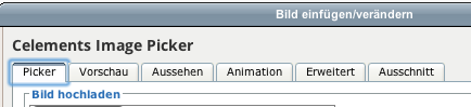 Der Celements Image-Picker bietet zusätzliche Möglichkeiten der Bildbearbeitung über die Reiter: