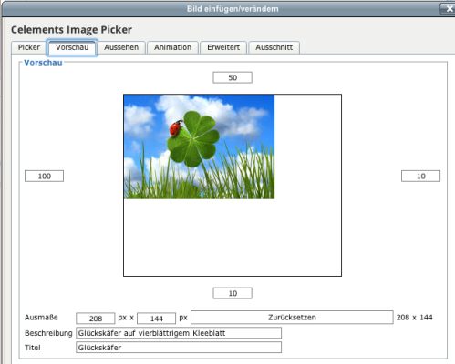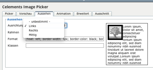 Zusätzliche Möglichkeiten mit dem Celements Image-Picker
