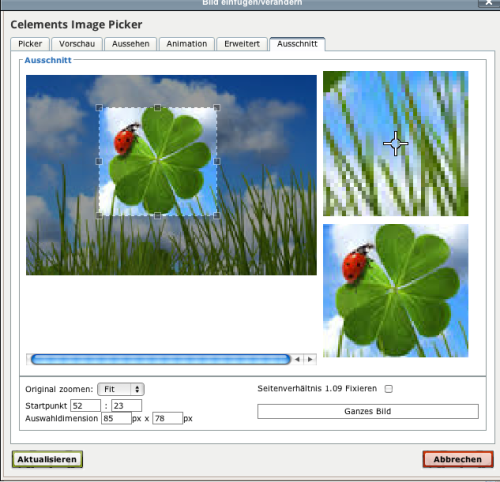 Der Celements Image-Picker erlaubt auch, aus einem Bild nur einen Ausschnitt zu wählen.