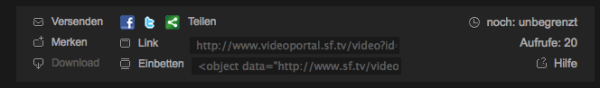 // Auf SF finden Sie das "SF Videoportal". Dort wählen Sie Ihr gewünschtes Video aus. Unterhalb des Videos findet sich ein kleiner Kasten mit einem Feld für "Link"