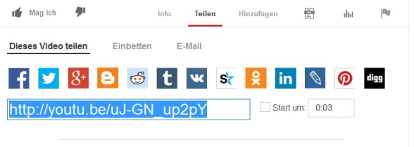 // Auf Youtube finden Sie unter dem Video eine Schaltfläche "Teilen" (oder auf Englisch "Share"). Klicken Sie auf diese.