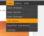 Menüpunkt Datei auswählen und .zip Import anklicken