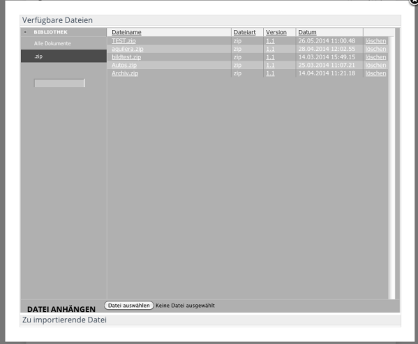 // Das importierte zip resp. die importierten Dateien erscheinen nun im Datei Manager