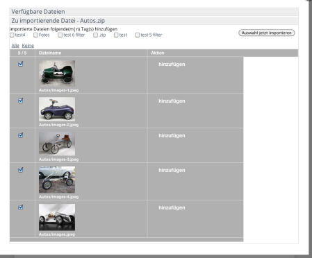 ausgepackt und stehen für die Webseite zur Verfügung. Wenn Bilder importiert wurden,